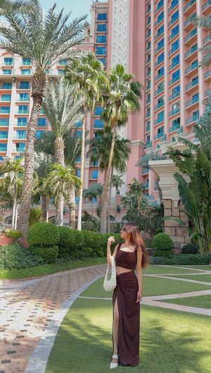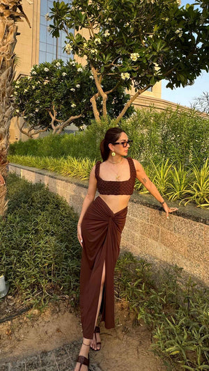 For a beach vacation, pair the Brown Knotted Skirt with the Textured Crop Top, sandals, and a floppy hat for a relaxed yet stylish vibe. For a formal evening, style with a blouse, heels, and statement jewellery to effortlessly elevate the look.