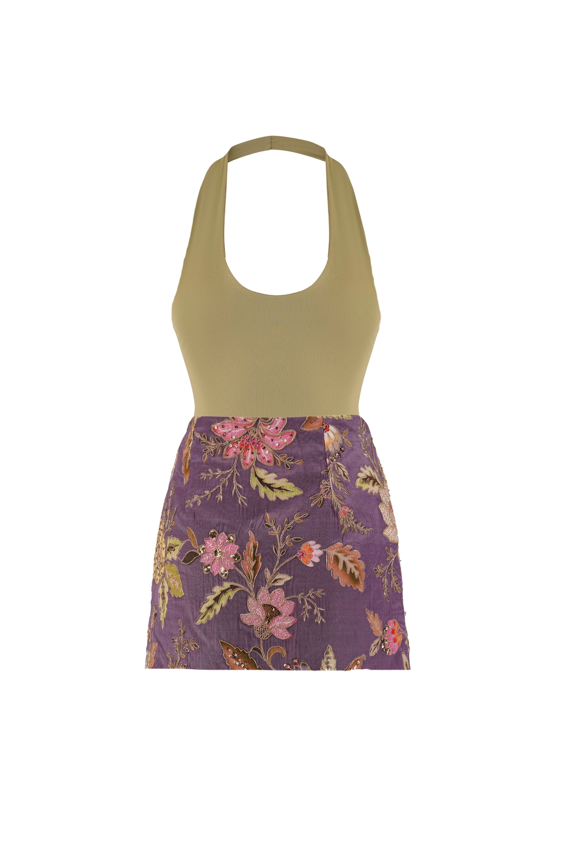 The MILEY & TAYLOR co-ord is your reminder that contrast is queen. Soft stretch meets structured crepe, earthy green meets blooming embroidery, casual tank meets tailored mini. Together, they channel 'vacation mode' with a side of main character energy. Wear them to brunch, wear them to dance. Either way, you’re getting compliments.