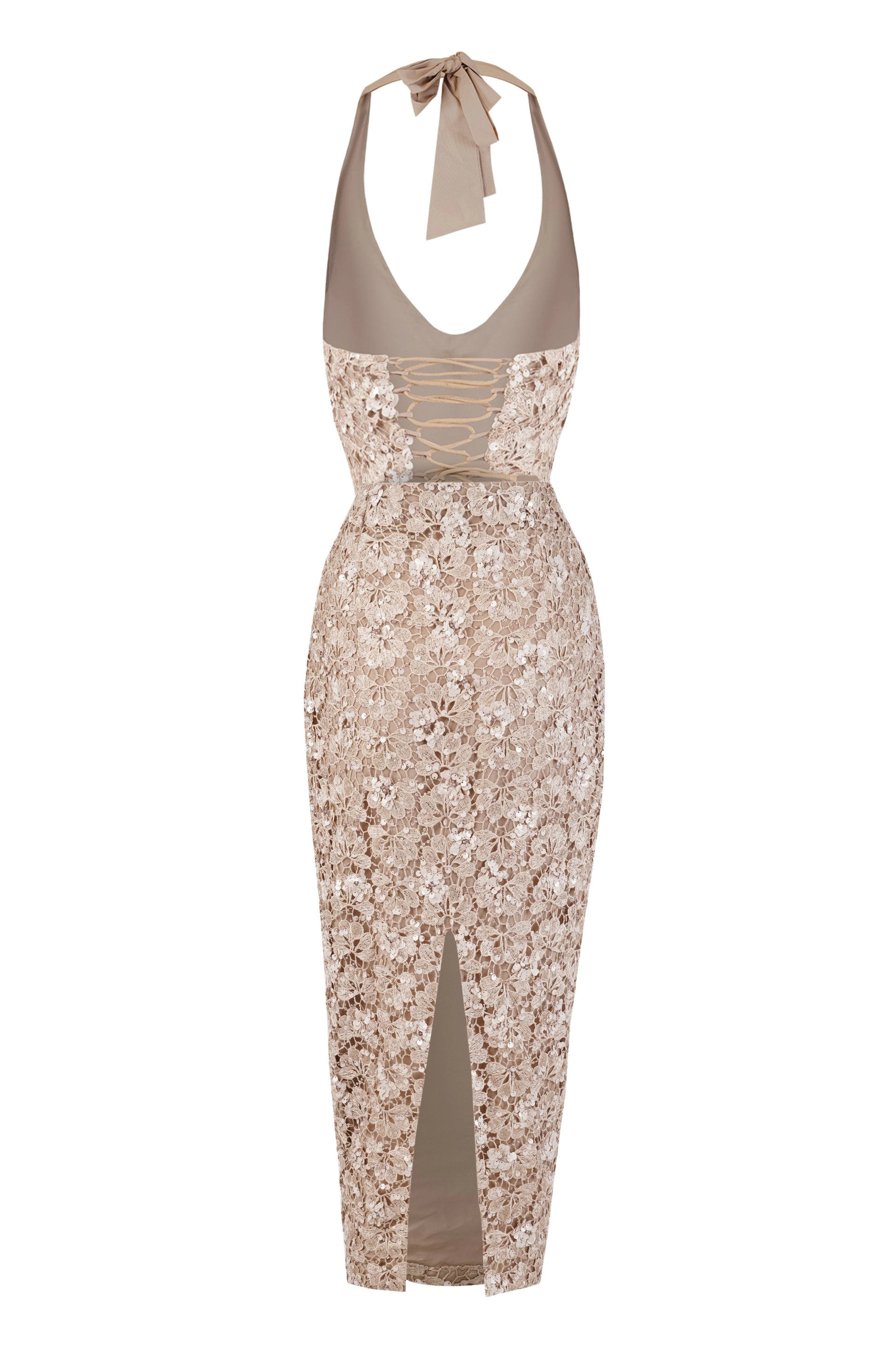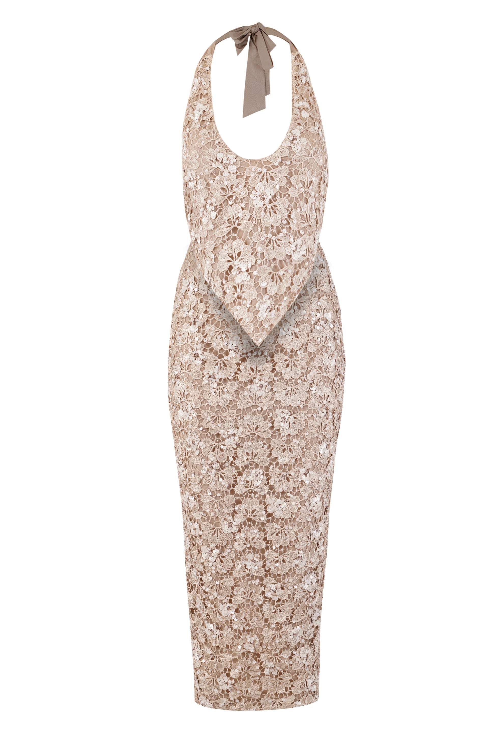 This one’s for your poolside party Pinterest board. The OLIVIA Co-ord pairs a halter neck top with tie-ups and a fitted midi skirt, both in delicate sequinned crochet that catches light like a dream. Fully lined for comfort, it’s your go-to for making a statement without shouting. Style them together to look like you’re the main event (because you are).
